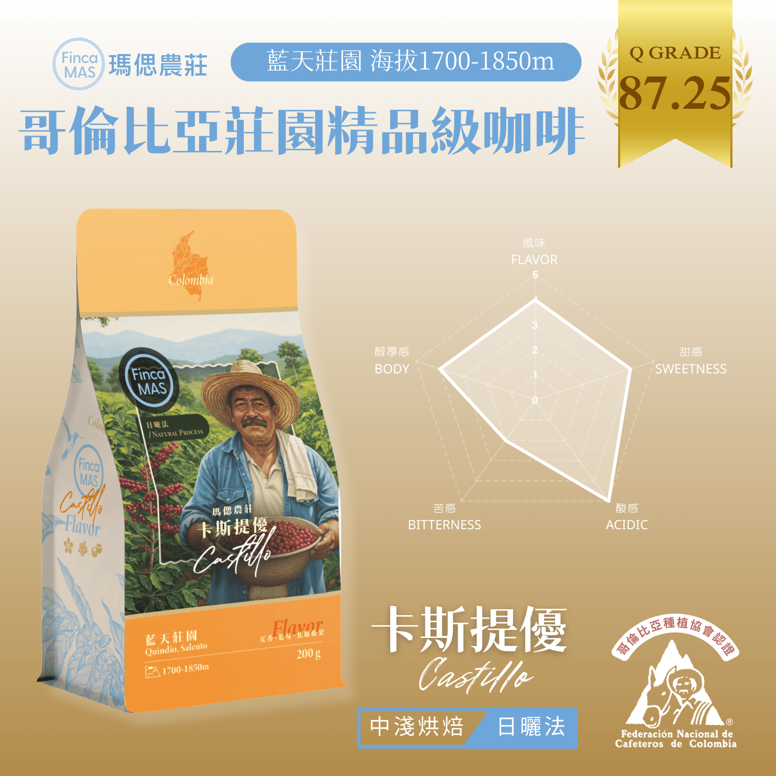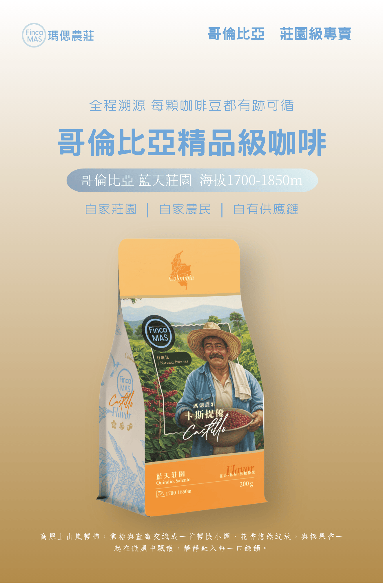 哥倫比亞 藍天莊園 卡斯提優 蜜處理 精品咖啡豆 200g