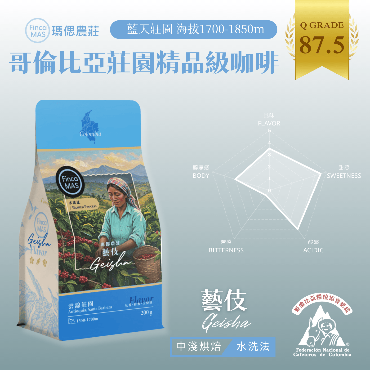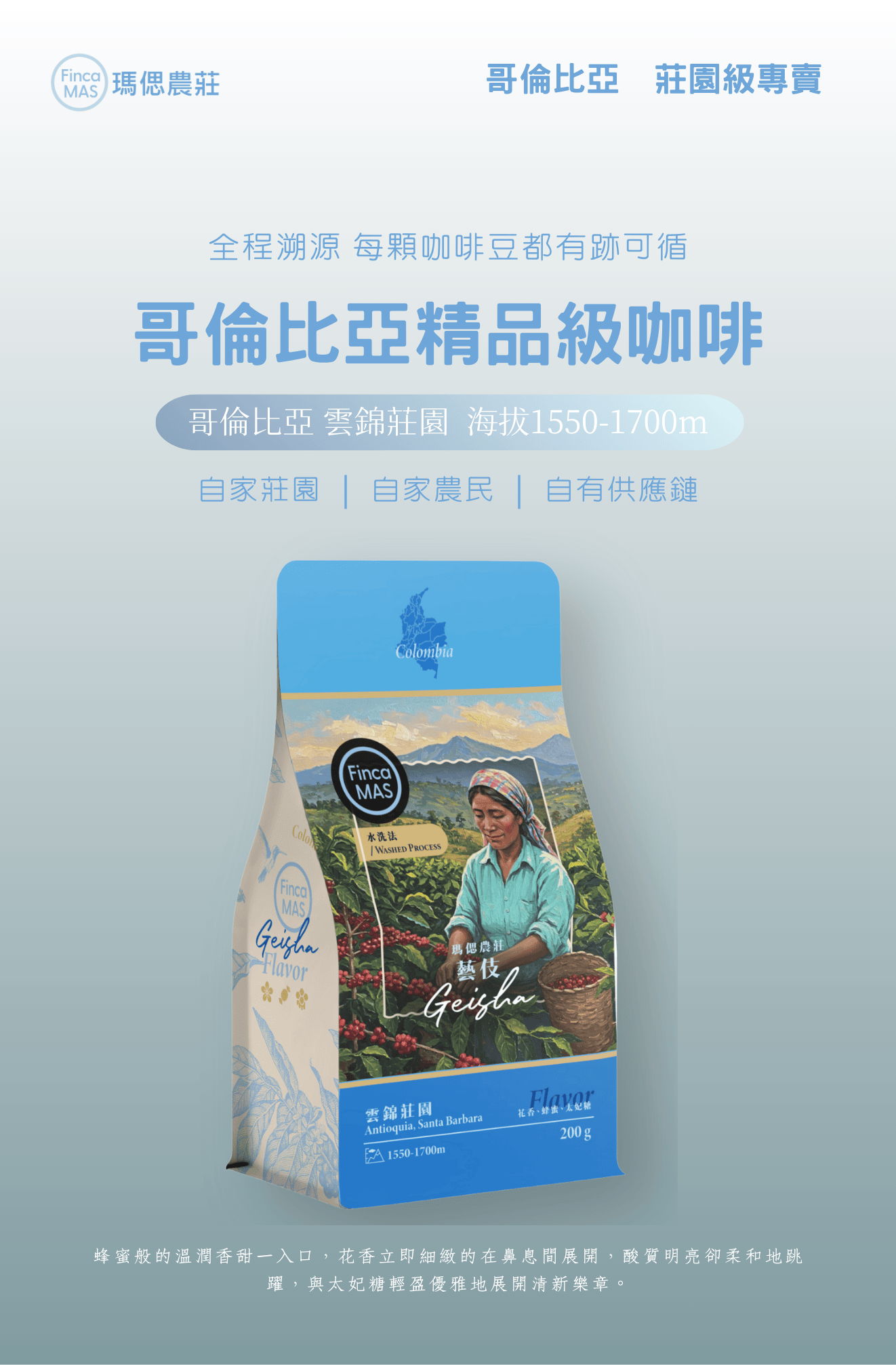 哥倫比亞 藍天莊園 藝伎 水洗法 精品咖啡豆 200g