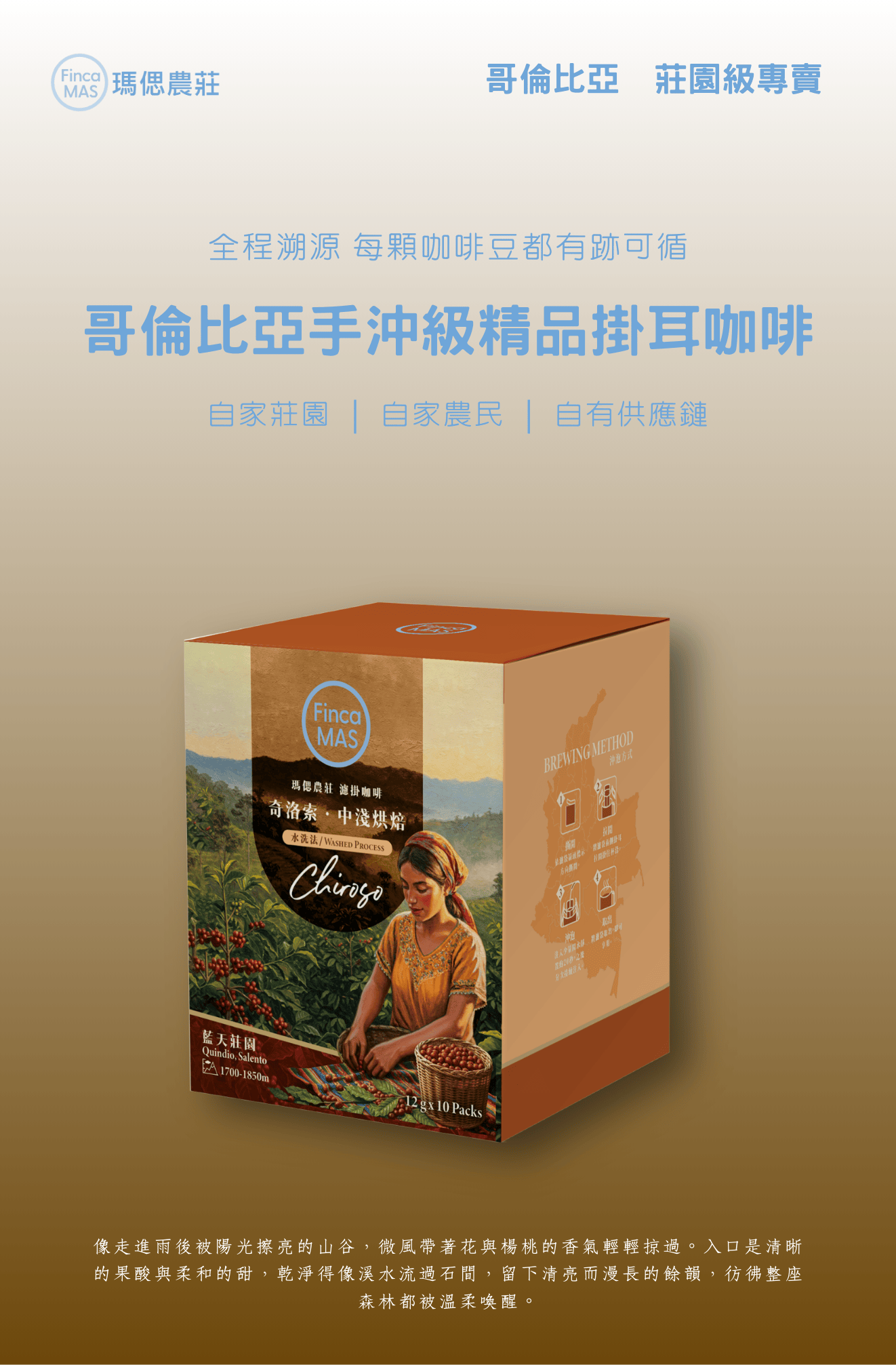 哥倫比亞 藍天莊園 奇洛索 水洗法 手沖級精品掛耳咖啡 12g*10包