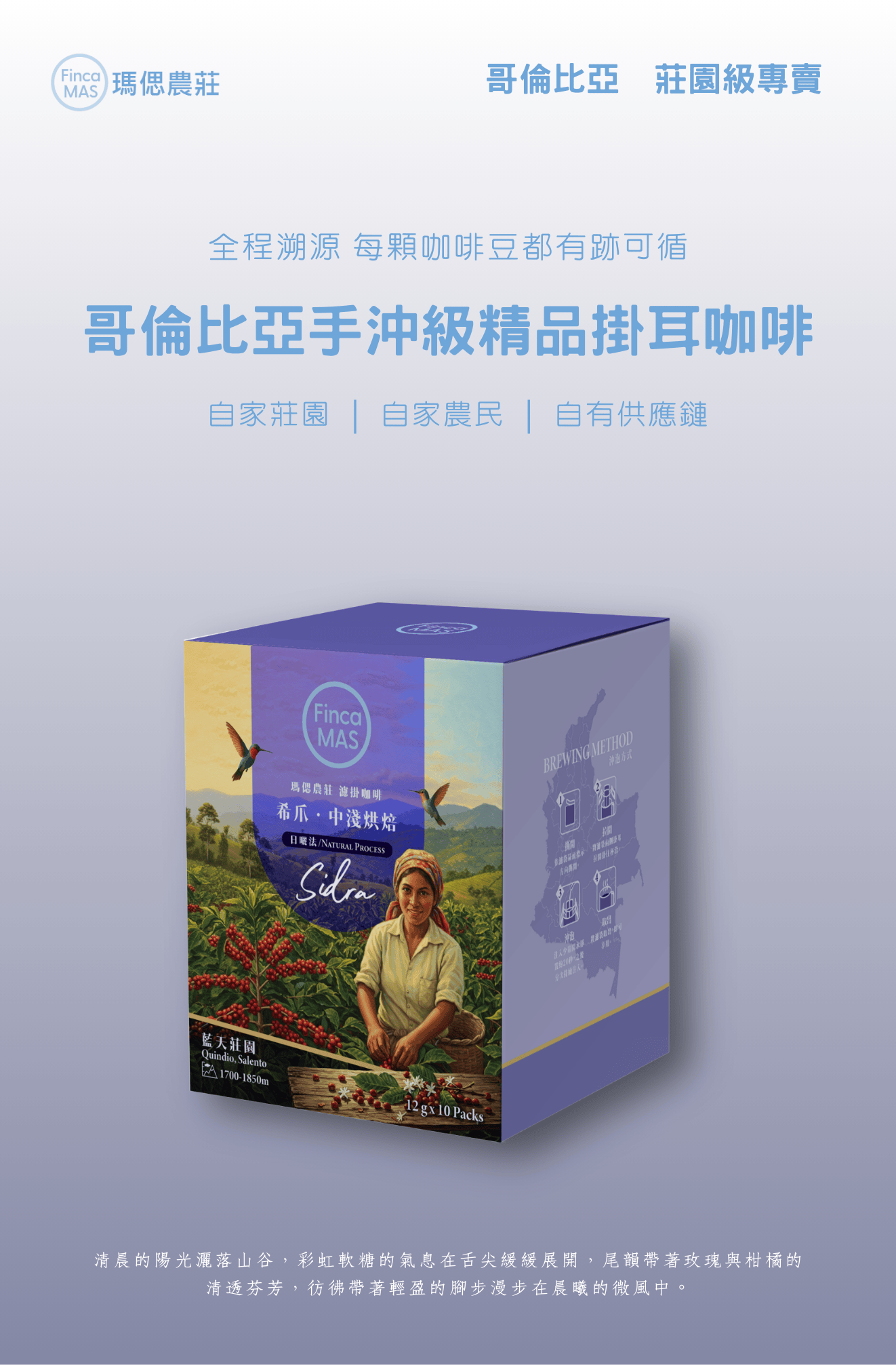 哥倫比亞 藍天莊園 希爪 日曬法 手沖級精品掛耳咖啡 12g*10包