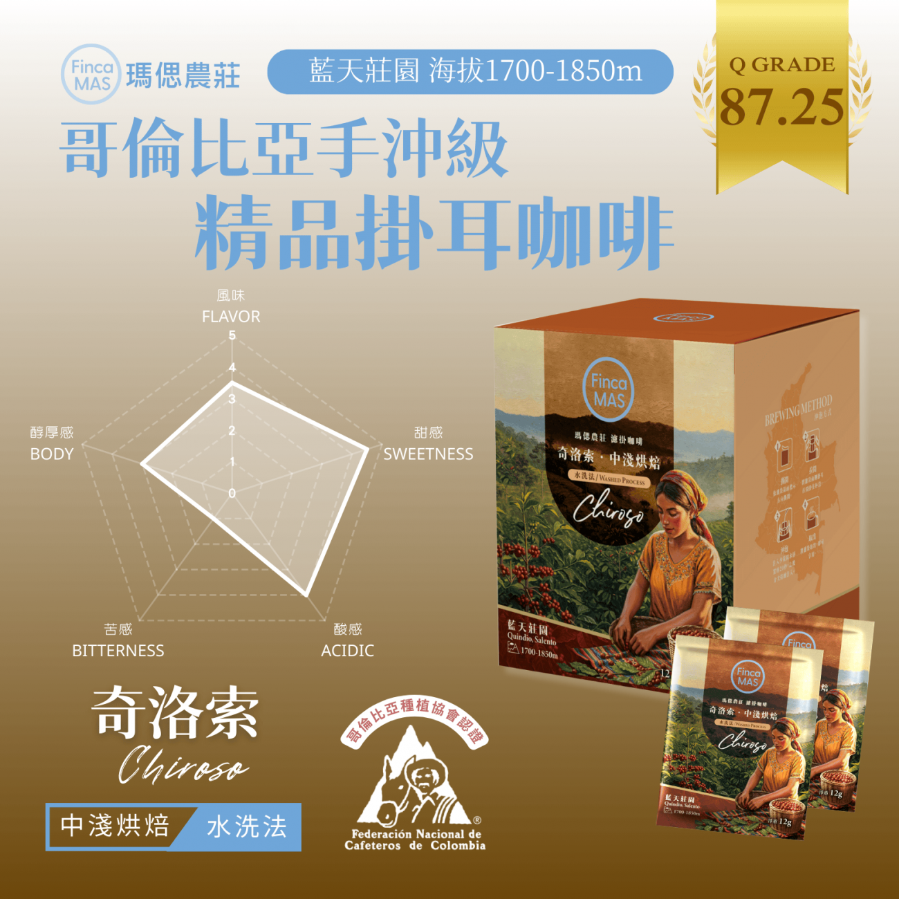 哥倫比亞 藍天莊園 奇洛索 水洗法 手沖級精品掛耳咖啡 12g*10包