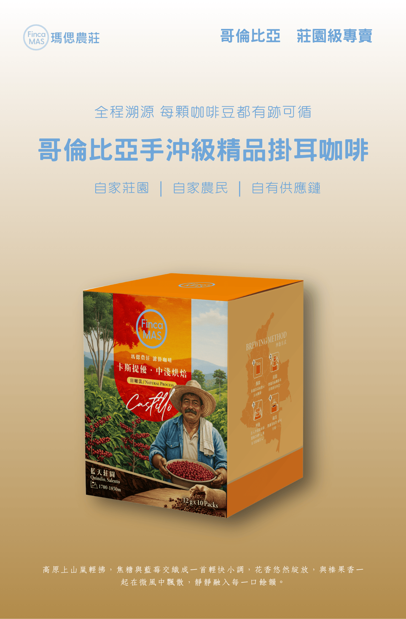 哥倫比亞 藍天莊園 卡斯提優 蜜處理 手沖級精品掛耳咖啡 12g*10包