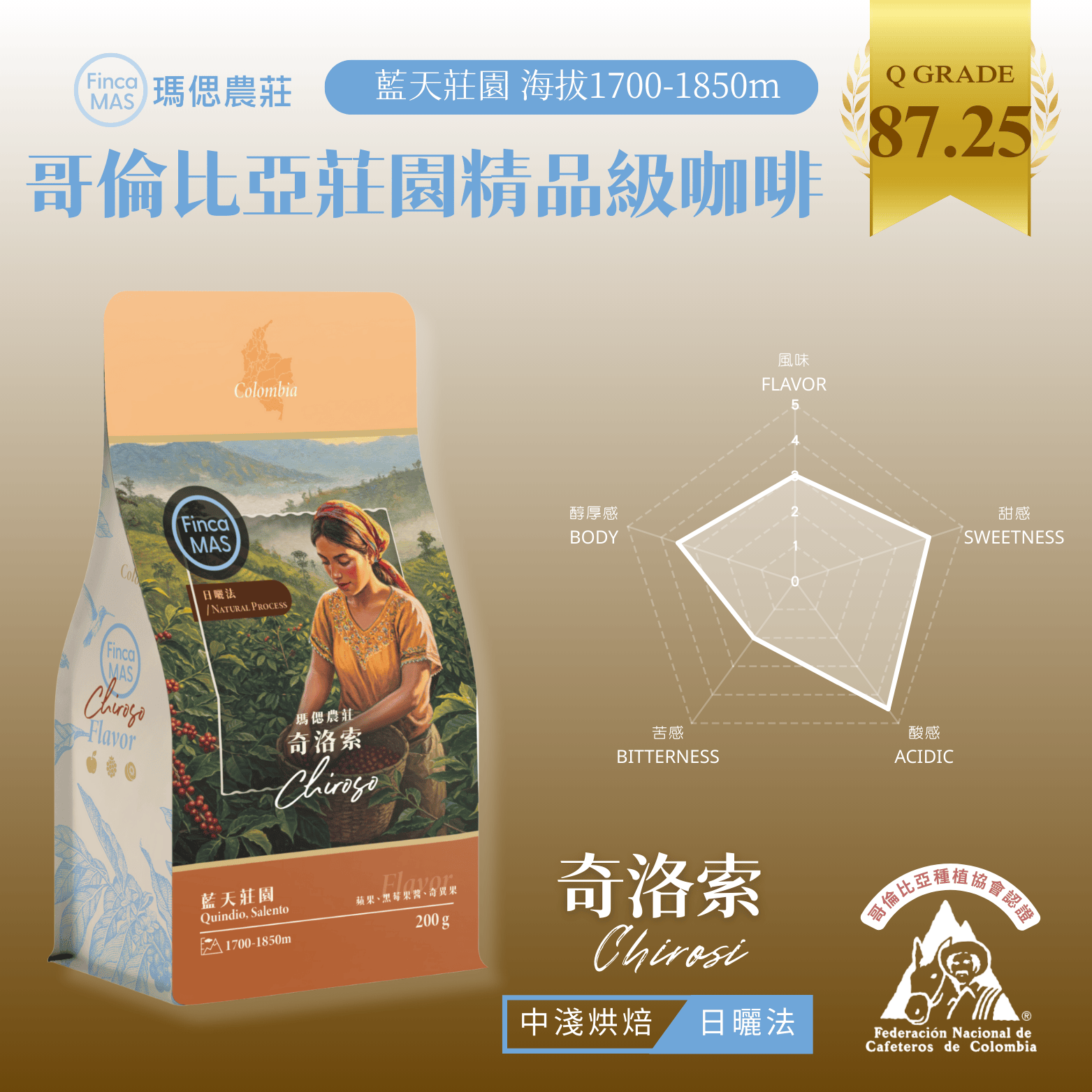 【台灣搶先上市】哥倫比亞 藍天莊園 奇洛索 日曬法 精品咖啡豆 200g